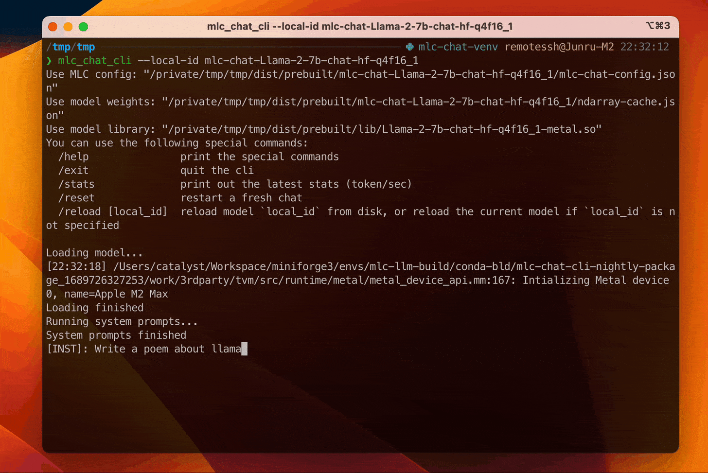 🔹 Both Llama 2 7B and 13B are now available on MLC LLM through CLI. 7B model generating ~46 tok/s on Apple M2 Max and ~156 tok/s on RTX 4090. Stay tuned for the web version, as well as more soon-landing 13B and 70B model optimizations! Details